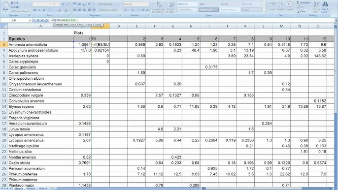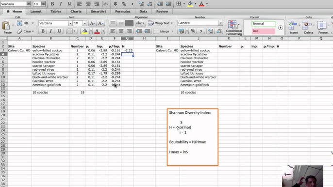 How To Use Excel To Calculate The Shannon Index Of Diversity Youtube